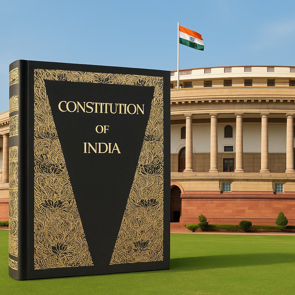 भारतीय संविधान विश्व का सबसे बड़ा लिखित संविधान है। इसमें 448 अनुच्छेद, 12 अनुसूचियाँ और अनेक संशोधन शामिल हैं। यह हमारे लोकतंत्र की नींव है और नागरिकों के अधिकार व कर्तव्यों को परिभाषित करता है।